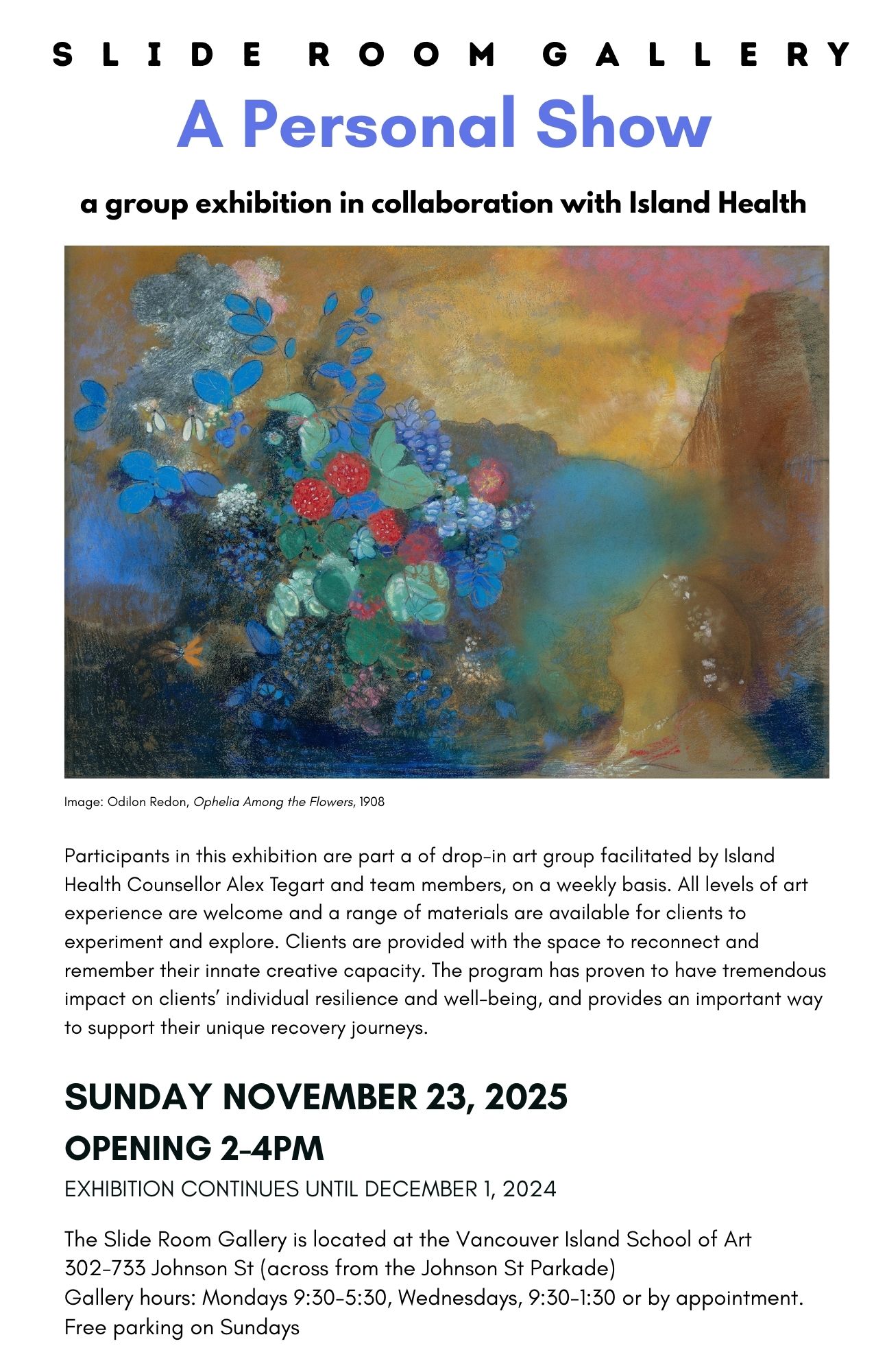 A group exhibition in collaboration with an Island Health Art Group for persons in recovery.