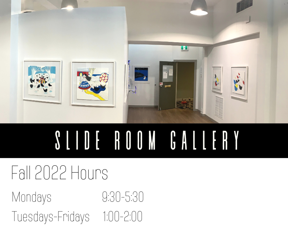 The mandate of the Slide Room Gallery is to focus on local contemporary art. Since the inception of the Slide Room Gallery in 2006, exhibitions included drawing, painting, sculpture, photography, video and installation. There have been solo and group shows of art from local, national and international artists. As of March 21, 2007, the Slide Room Gallery has been incorporated as a non-profit society in the province of British Columbia. For the first 12 years the gallery was located in the lower level of the Vancouver Island School of Art at 2549 Quadra. From 2018-2019, the gallery was located in the former North Park Bike Shop and then from 2019-2021 we transitioned to online exhibitions. As of October 2021, the gallery now has a physical space again in the front part of the Vancouver Island School of Art.