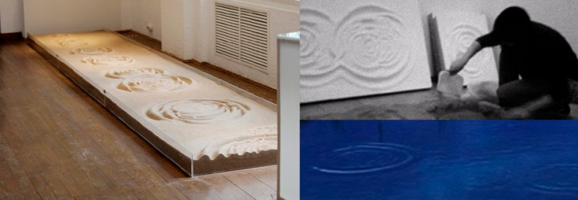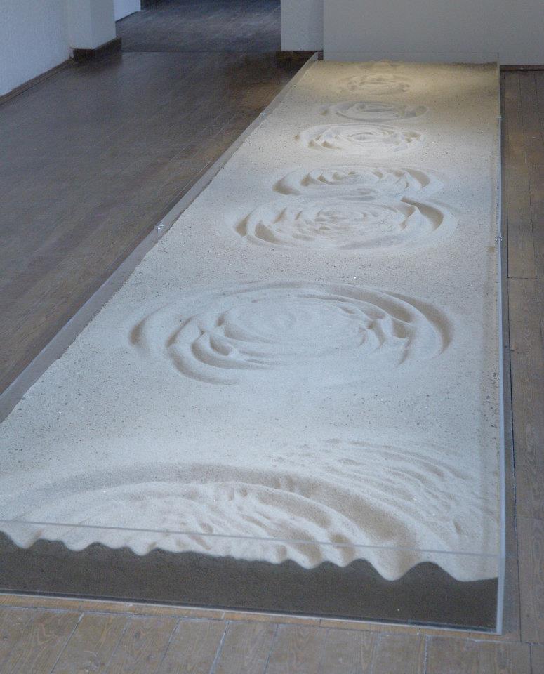 Sand and acrylic 110х600х15 cm, 2009. Science consultants: Oleg Sibelev (Senior research associate of Petrology and Tectonics laboratory of the Geology Institute of Karelian Science centre of Russian Science Academy, Candidate of geology and mineralogy) and Vladimir Eflov (associated professor of mechanics subdepartment of Petrozavodsk State University, Candidate of physics and mathematics)