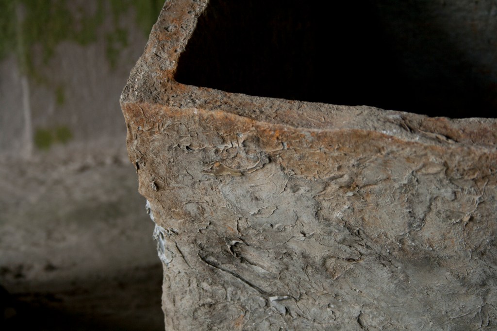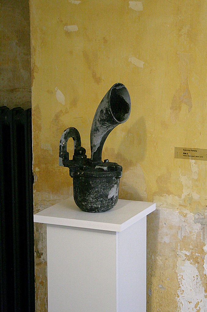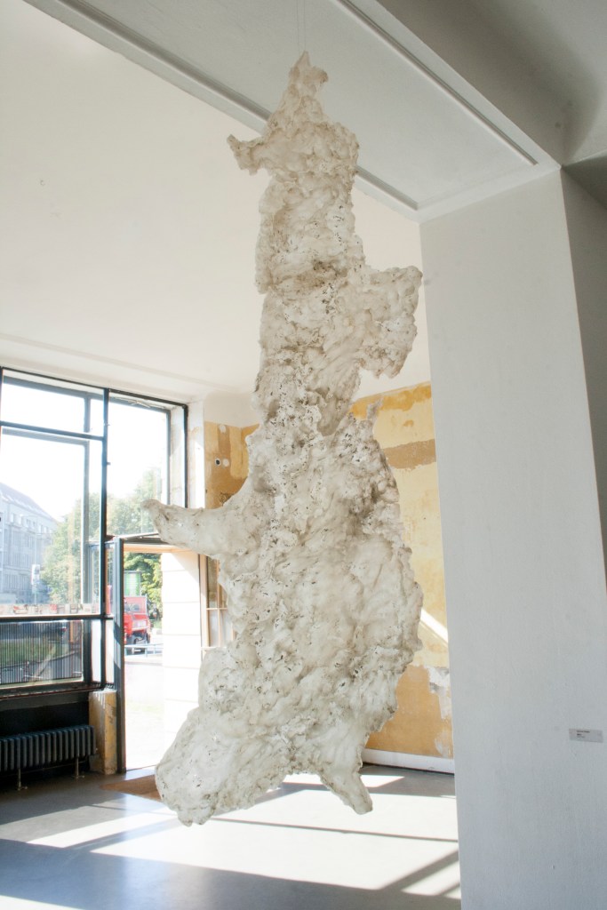 Egorova describes Pseudomorph III as “a reinterpretation of the famous theme of the conflict between form and content. Reproducing this phenomenon with artistic means, the process of mineralogical pseudomorph (fossils) formation, by transferring it from the field of science into the field of art. Pseudomorphs, which replicate the external shell and replace the internal structure of the object, as a result become a metaphor for the transformation of the original object into the museum piece. Withdrawal of a simple (i.e. technical) subject from the usual context, transferring and integrating it into an alien environment (i.e. the gallery) allow a breakdown of the internal connection between form and content, as well as the local connection with the local context. This scenario allows the artist to connect with a variety of stories, suggests looking at the subject from a different perspective, bringing him back a clean form of energy – the one that was generated by the engineer who created it. At one of the stages of the pseudomorphs formation, only a phantom is left. An independent abstract form which is revealed only in unusual cases of the object existence. During the intervention of Pseudomorph III, original fragments of the Rüdersdorf lime plant were replaced by concrete fossils, while the original artifacts, forcibly removed, have been relocated to the display area in Berlin and become abstract sculptures.”