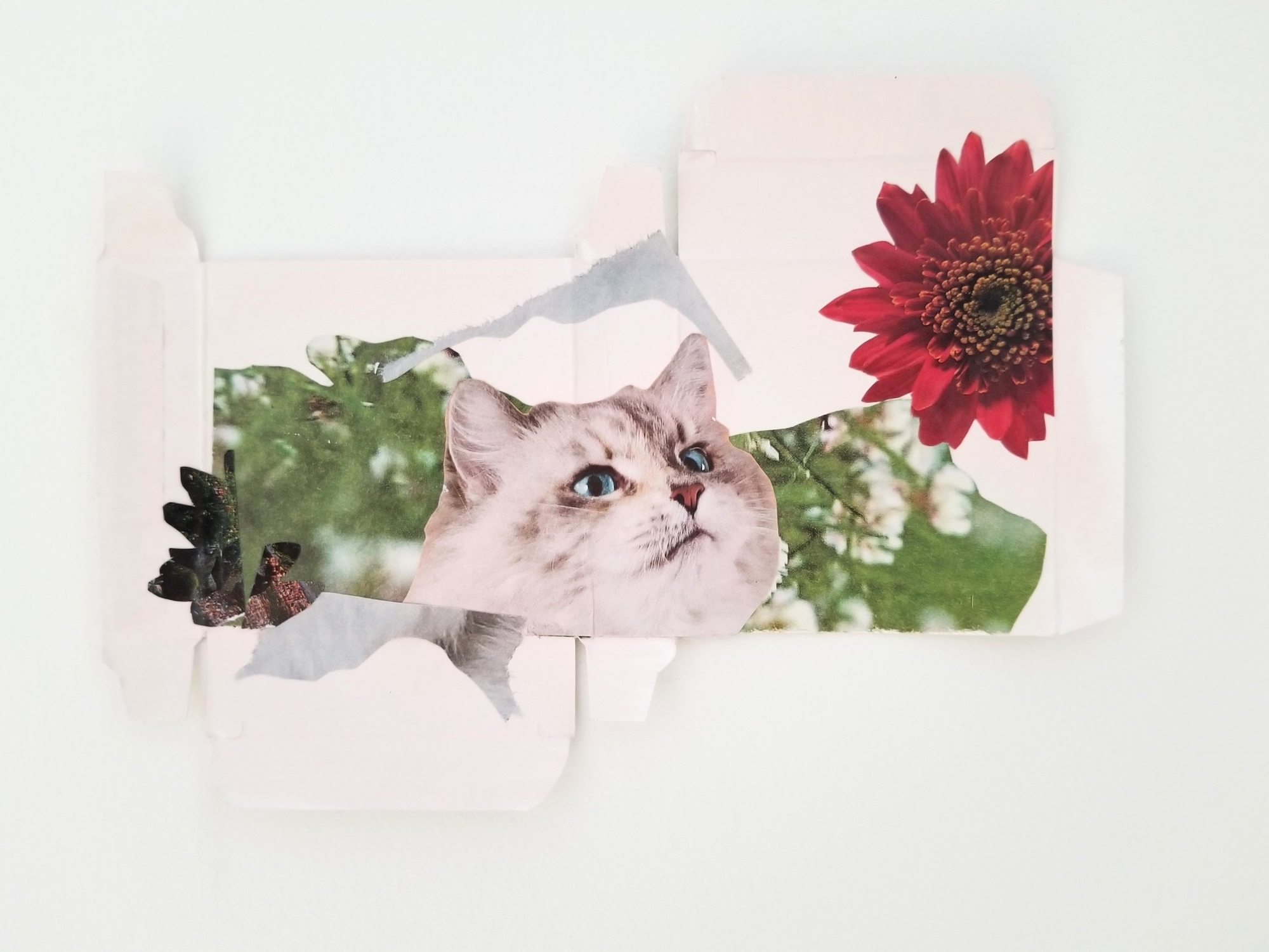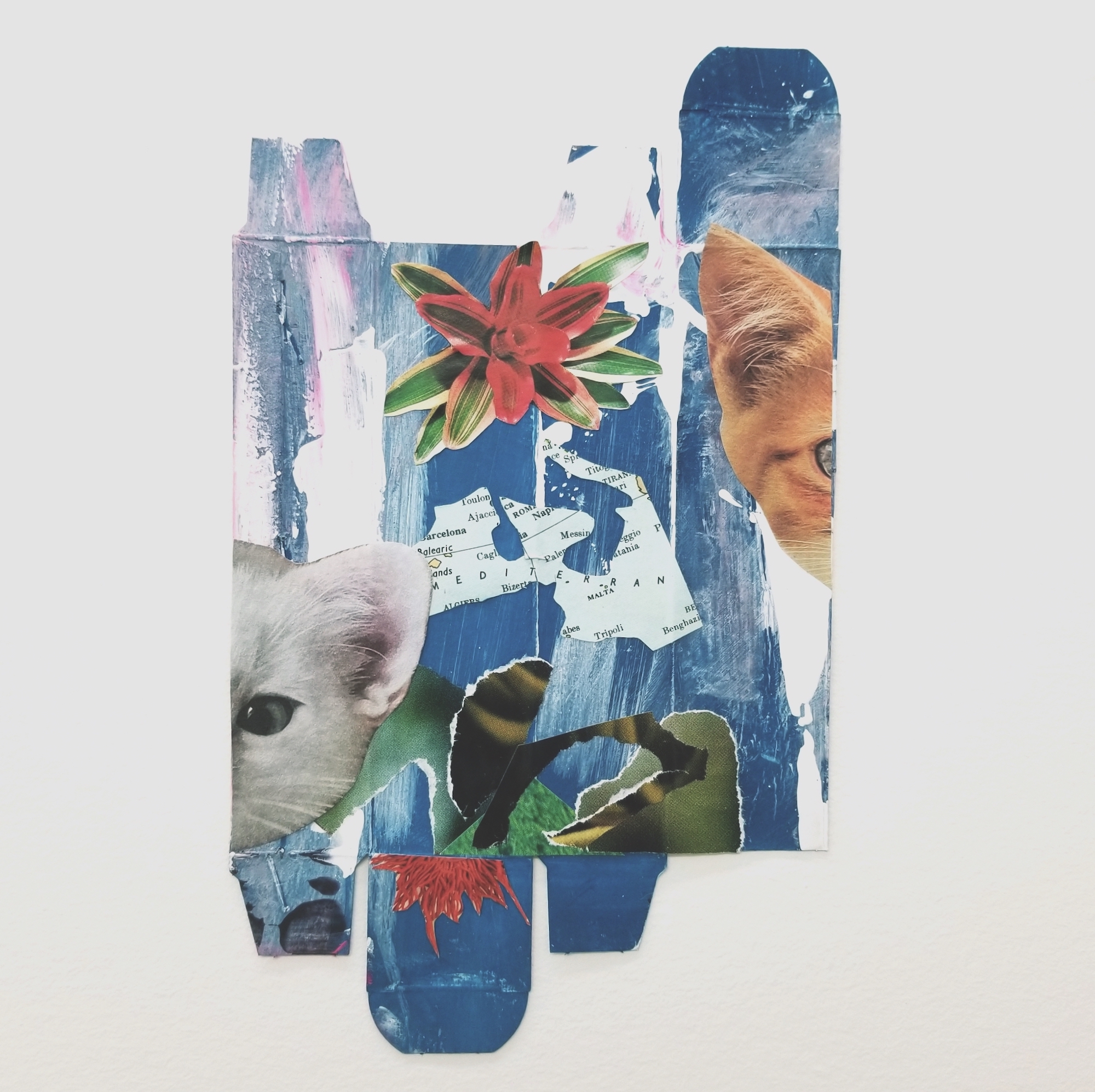 Paper and house paint on found cardboard, 7.5” x 4″, Clare Thomas